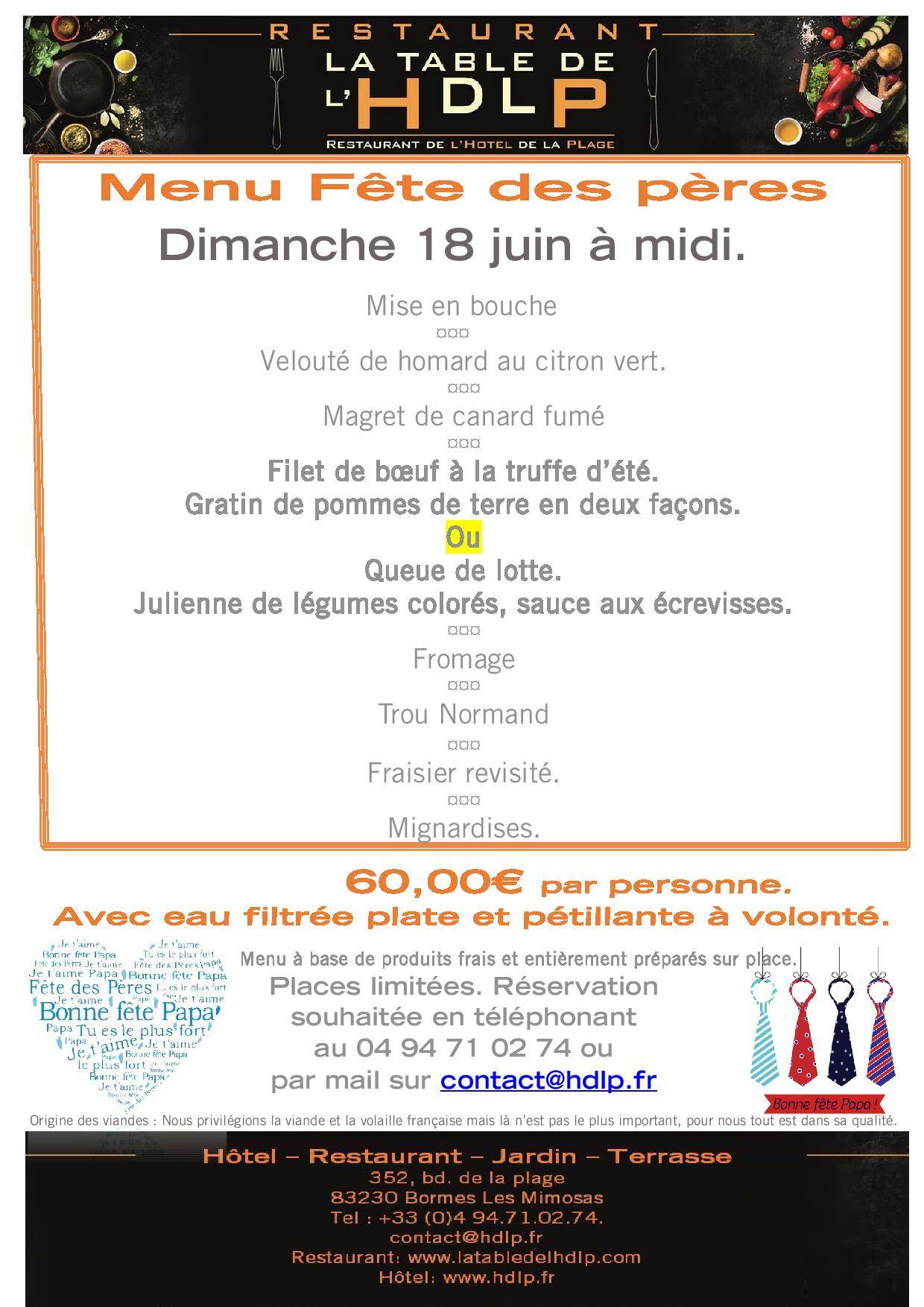 La Table de L'HDLP, notre restaurant, fêtera dignement les papas ce dimanche 18 juin à midi. Un menu en 8 déclinaisons pour marquer cette journée.