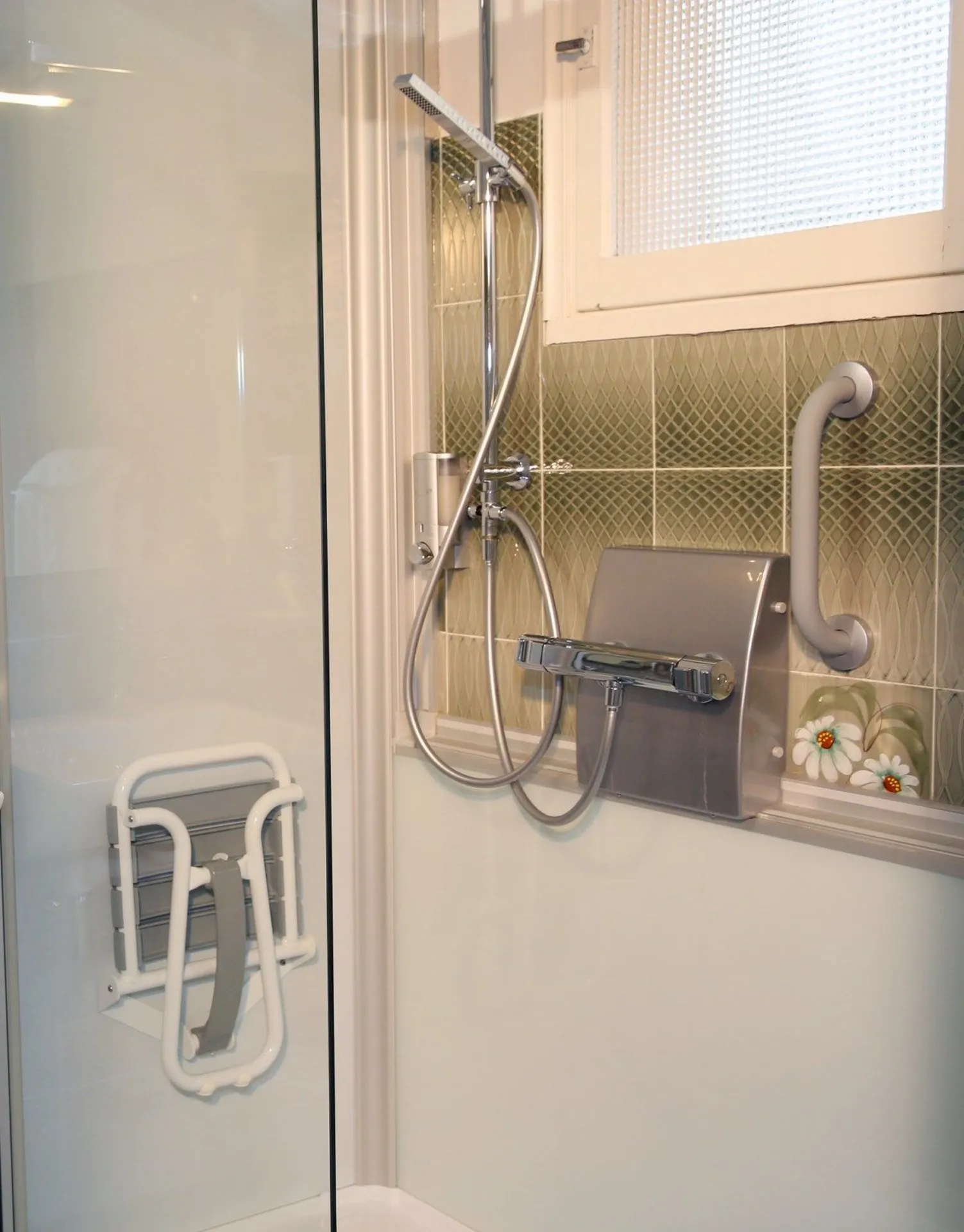 Elle dispose de 2 lits simples de 90x190cm, d'une salle de bain avec douche (+/-3,7m2) adaptée aux personnes à mobilité réduite et d'un WC séparé. Télévision (TNT).